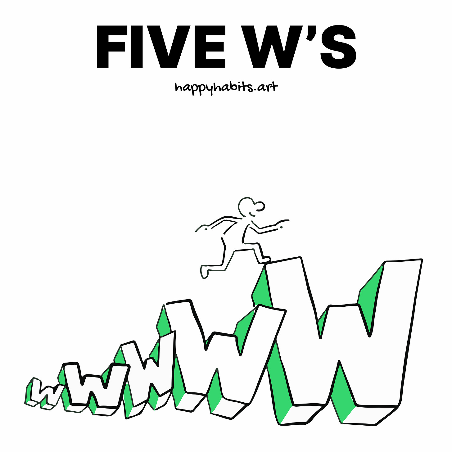 Five Ws⁇ The five Ws are Who, What, When, Where, and Why Mar 23, 20225ShareThese questions help you understand the full scope of the topic/ situation being discussed.
